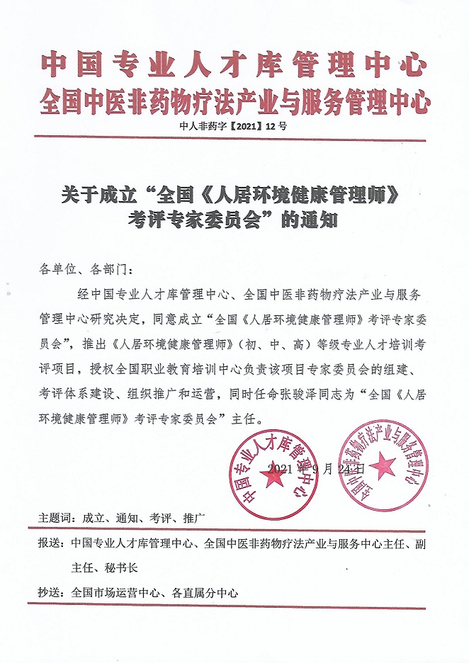 关于成立“全国《人居环境健康管理师》考评专家委员会”的通知